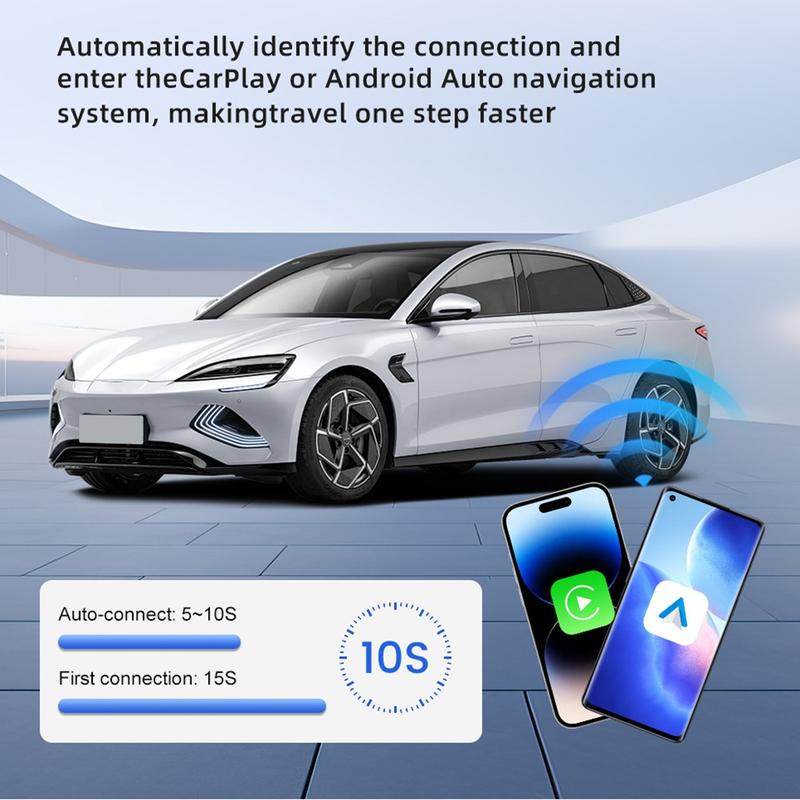 - Bezprzewodowa aktualizacja: Natychmiastowa konwersja przewodowego CarPlay lub Android Auto w samochodzie na połączenie bezprzewodowe.