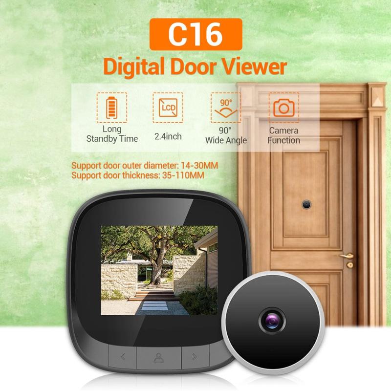 2,4-calowy inteligentny wizjer do drzwi C16 to szerokokątne rozwiązanie o wysokiej rozdzielczości, zapewniające bezpieczeństwo w domu. Wyposażony w 2,4-calowy wyświetlacz TFT LCD, kamerę z wizjerem 0,3 MP i wbudowaną pamięć zdjęć, pozwala wyraźnie widzieć odwiedzających i rejestrować, kto przychodzi do drzwi.