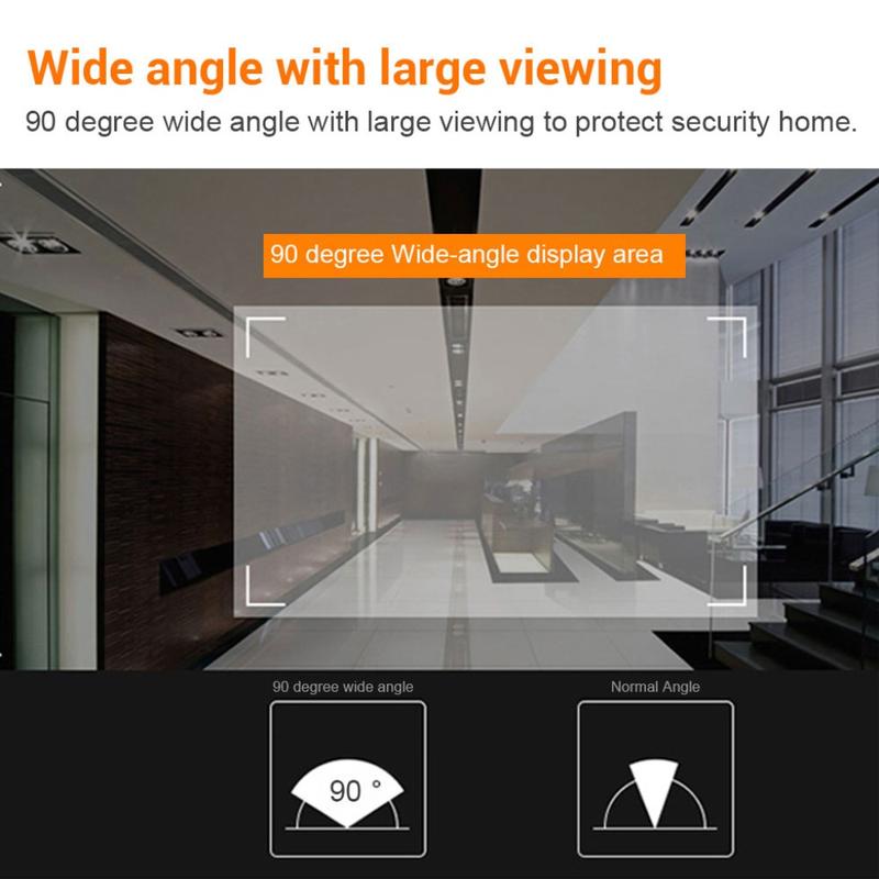 Obiektyw 90° zapewnia szerokie pole widzenia, pozwalając zobaczyć odwiedzających i otoczenie wyraźniej niż w przypadku tradycyjnego wizjera.