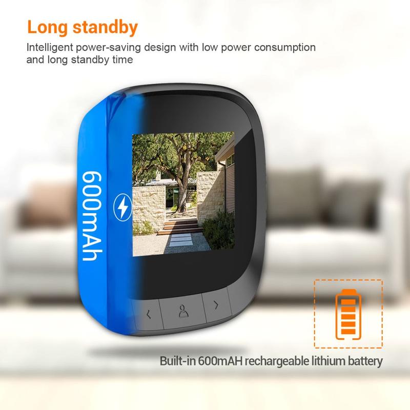 Zasilany wbudowaną baterią litową 600 mAh, ten kompaktowy wizjer drzwiowy zapewnia długotrwałą pracę bez konieczności częstego ładowania.