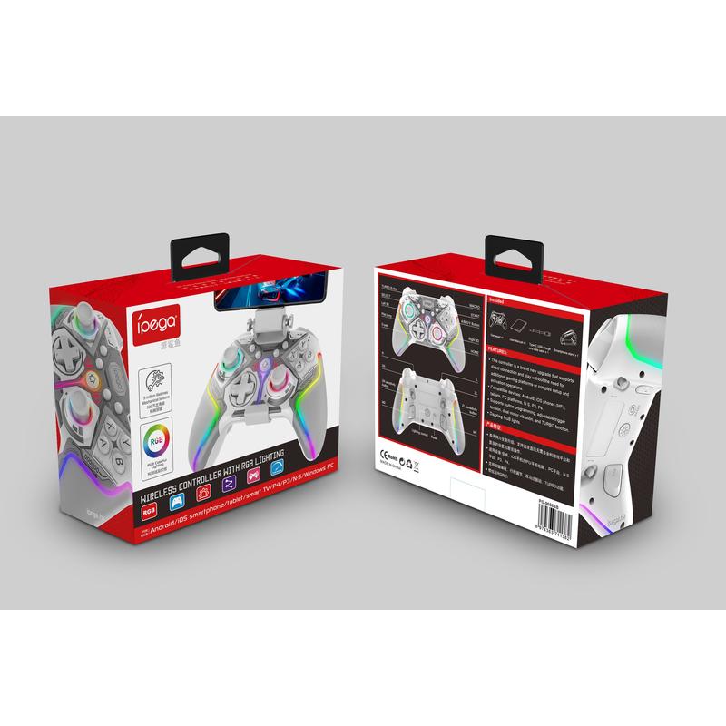 Bezprzewodowy kontroler do gier iPega PG-9666BH RGB - drążki i spusty z efektem Halla, turbo, programowalne przyciski, podwójna wibracja - dla systemów Android/iOS (MFi)/PS3/PS4/PC/Switch