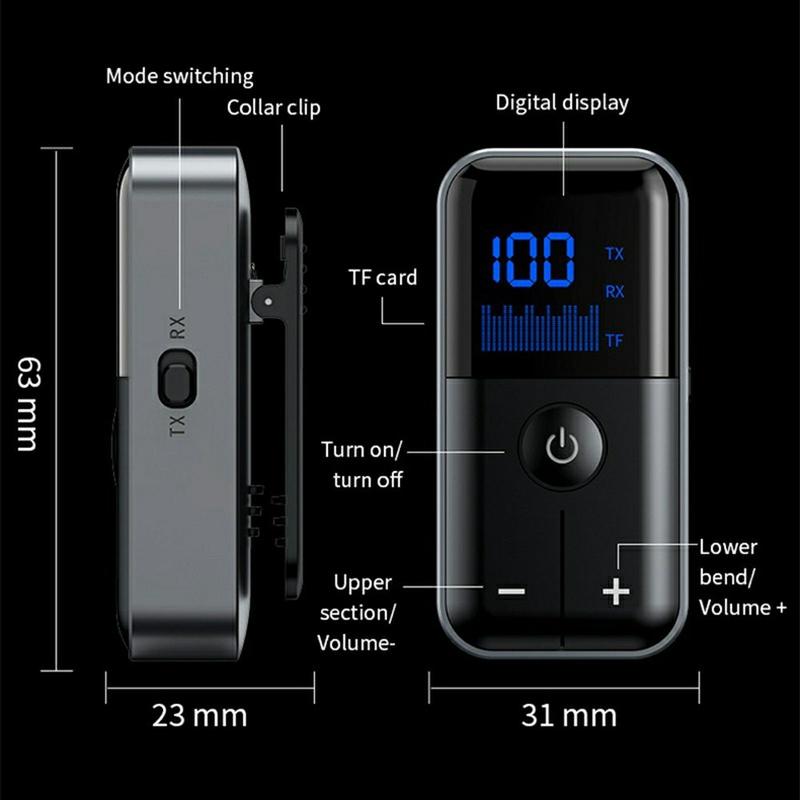 M20 Bezprzewodowy odbiornik / nadajnik Bluetooth 5.4 z AUX 3.5mm - adapter Lavalier Clip z odtwarzaniem z karty TF do samochodowego i domowego sprzętu audio