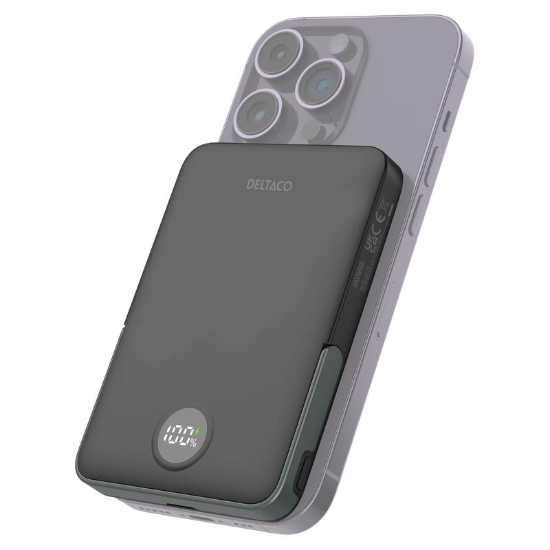 Magnesowy power bank Deltaco 5000mAh z podstawką - przenośna ładowarka USB-C PD 20 W