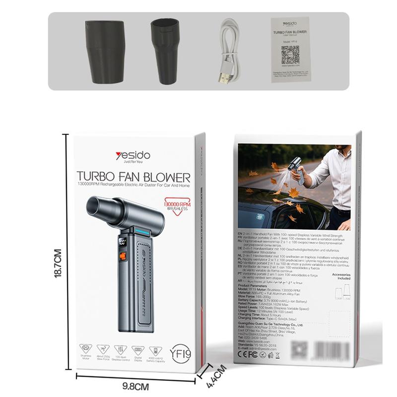 Ręczny wentylator / dmuchawa do kurzu Yesido YF19 - bezprzewodowa dmuchawa / wentylator / odkurzacz o wysokiej prędkości obrotowej 130000 obr