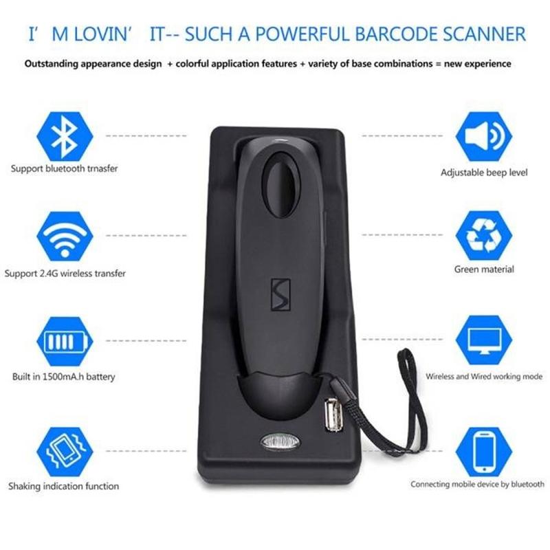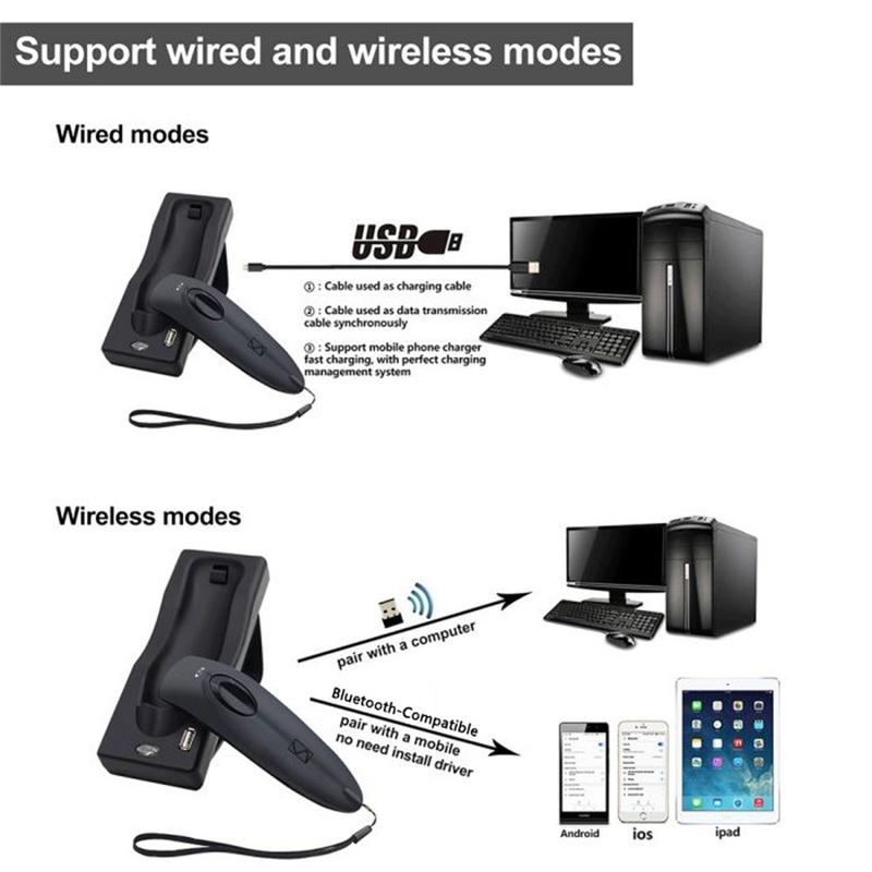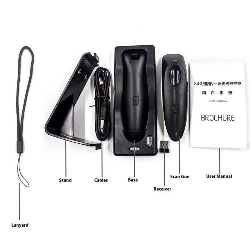 Bezprzewodowy skaner kodów kreskowych 2D R40 - czytnik kodów QR Bluetooth 4.0 i 2.4GHz z ładowarką, 1500 skanów/s