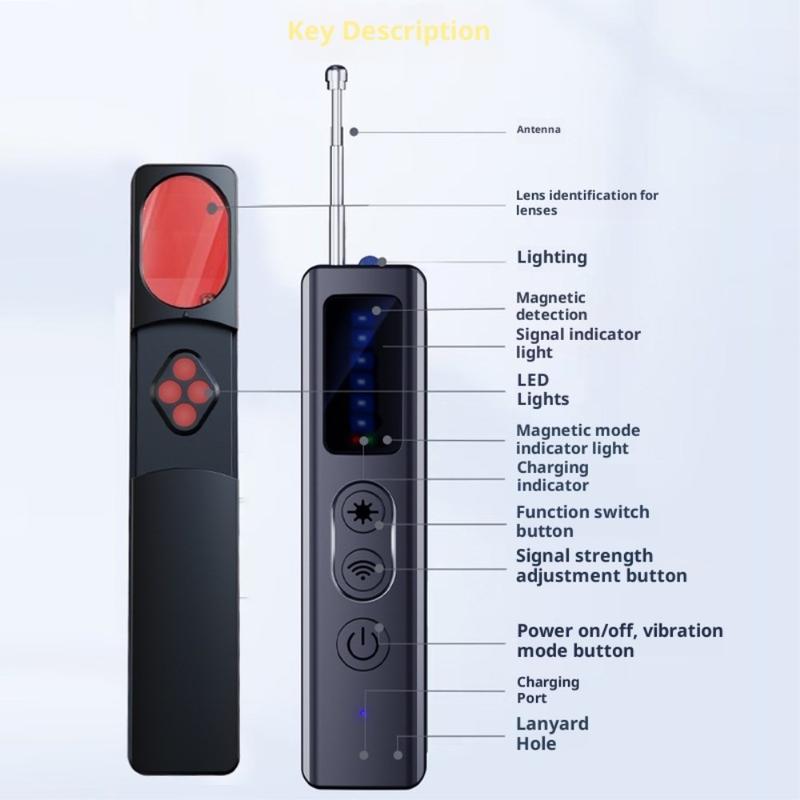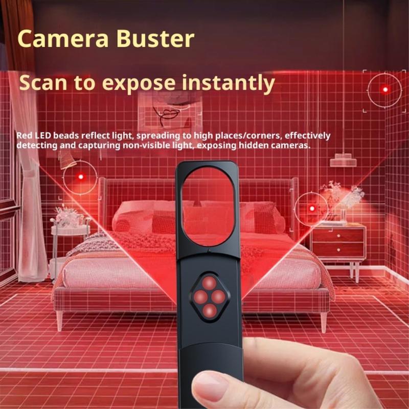Wbudowany skaner podczerwieni LED ujawnia ukryte obiektywy kamer, nawet przy wyłączonym zasilaniu lub w trybie ukrytym - idealny do wykrywania kamer otworkowych w lustrach, czujnikach dymu, otworach wentylacyjnych, zegarach i innych obiektach.