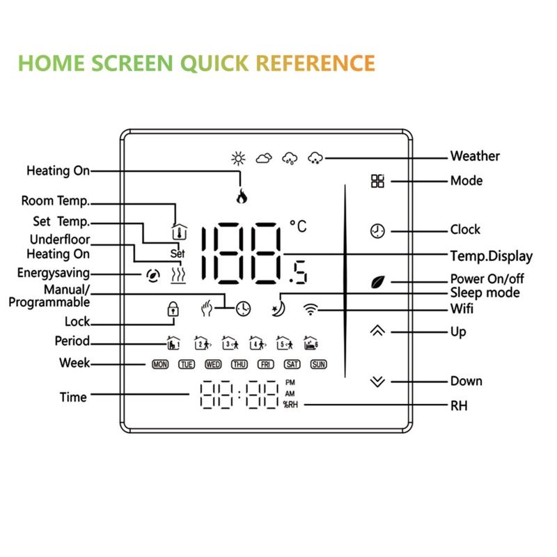 BHT-006GAW to nowoczesny inteligentny termostat zaprojektowany specjalnie do wodnych systemów ogrzewania podłogowego, który pomaga z łatwością zarządzać komfortem w pomieszczeniach. Dzięki łączności Wi-Fi oraz obsłudze aplikacji Tuya i Smart Life umożliwia zdalne sterowanie ogrzewaniem i dostosowywanie ustawień do codziennego trybu życia. Eleganckie wykończenie i smukła, wbudowana konstrukcja sprawiają, że jest to praktyczny dodatek do nowoczesnych domów, mieszkań i innych pomieszczeń.