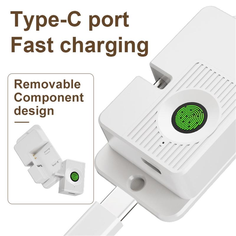 Zaprojektowany z myślą o niskim zużyciu energii, inteligentny zamek działa do 10 miesięcy na jednym ładowaniu (przy około 5 odblokowaniach dziennie). Szybkie i łatwe ładowanie za pomocą portu USB-C zapewnia, że blokada jest zawsze gotowa do użycia.