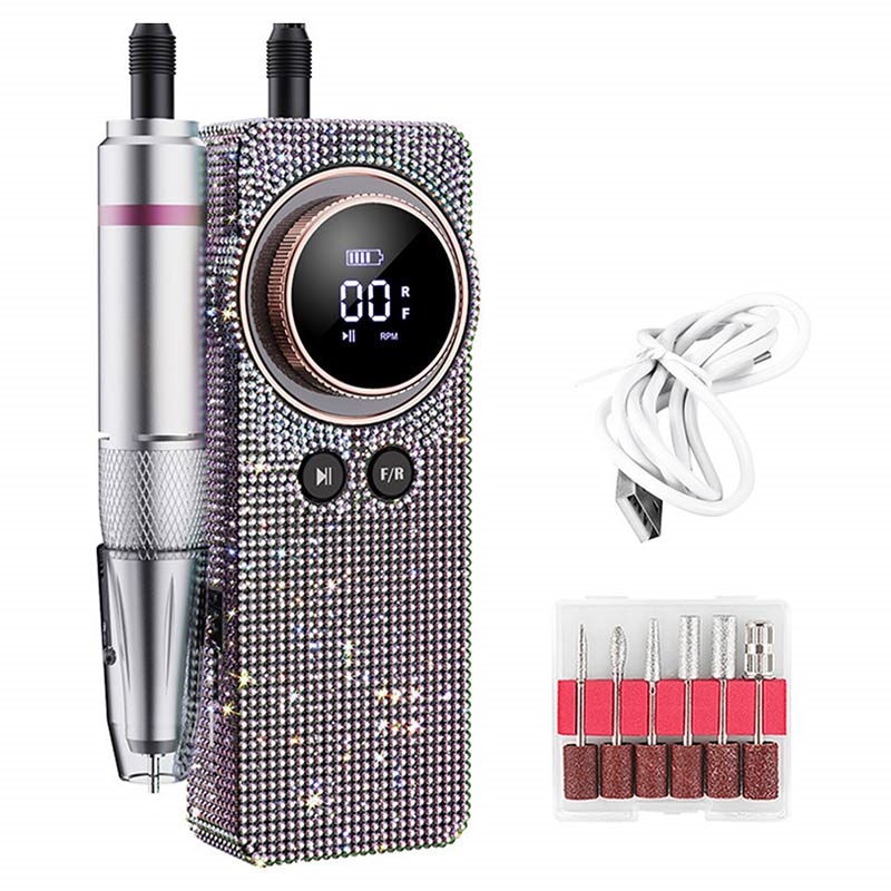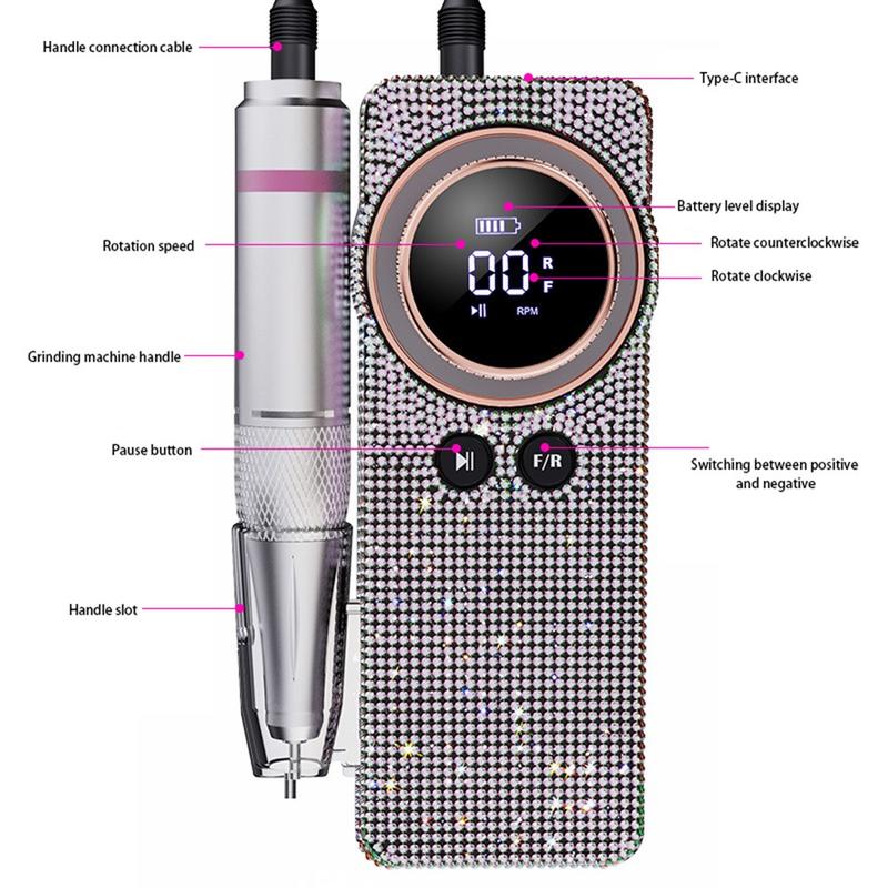 BLUEQUE BQ-108 - elektryczna wiertarka do paznokci z wzorem diamentowym do żelu i akrylu - akumulatorowa pilniczka o prędkości 35 000 obr./min z wyświetlaczem LCD