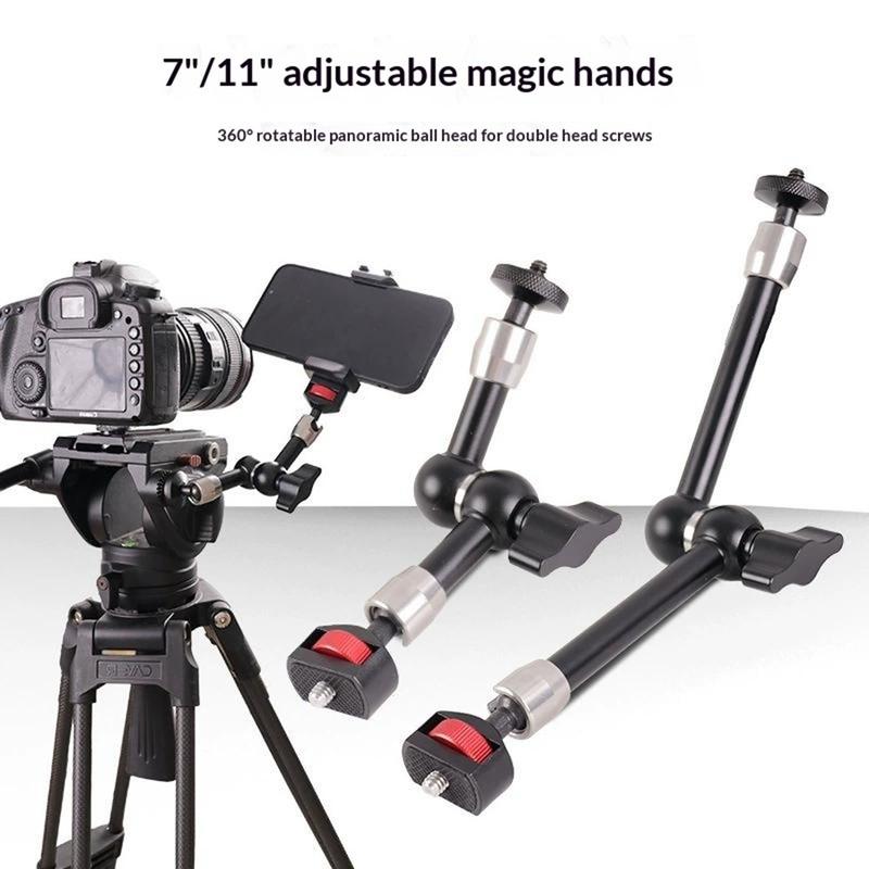 C119 11" uchwyt typu „magic arm” - regulowana głowica z podwójną kulką i gwintem 1/4" do aparatów, telefonów, mikrofonów i statywów