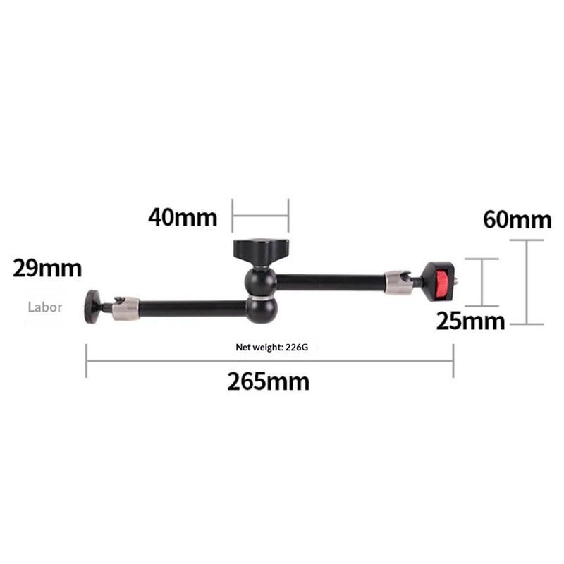Konstrukcja z podwójną głowicą kulową umożliwia regulację w zakresie 360 stopni, zapewniając bardziej precyzyjne ustawienie, a standardowy gwint 1/4" na obu końcach sprawia, że jest kompatybilny z szeroką gamą sprzętu. Wykonane ze stopu aluminium ramię charakteryzuje się solidną i trwałą konstrukcją, a jednocześnie jest wystarczająco lekkie, aby zapewnić łatwe przenoszenie i codzienne użytkowanie.