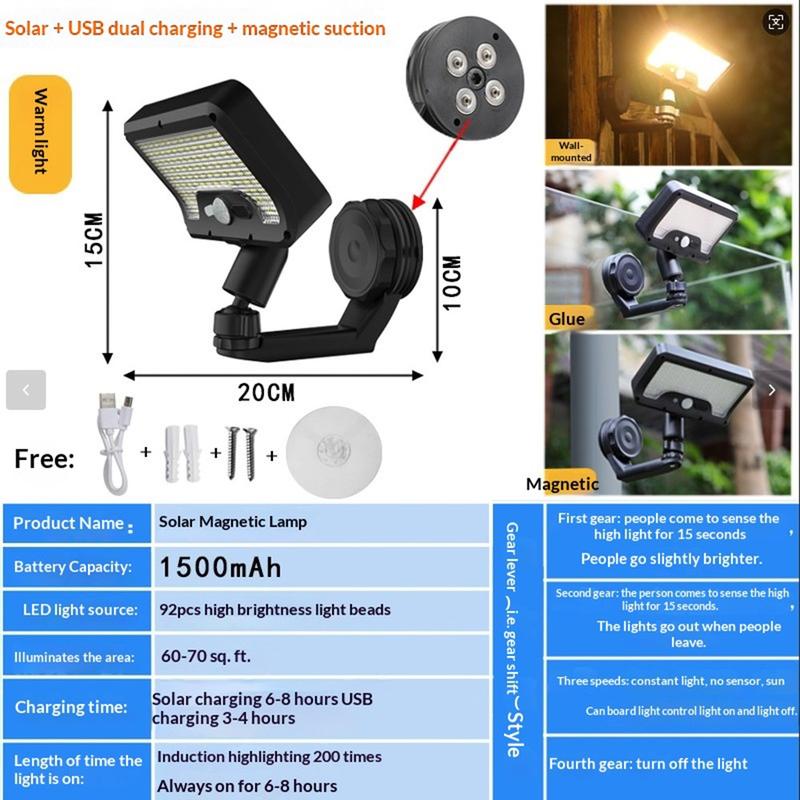 Oświetlaj przestrzenie zewnętrzne w bardziej efektywny sposób dzięki magnetycznej lampie ściennej CCP0144 z czujnikiem ruchu i 92 diodami LED. Ta lampa solarna, przeznaczona do ogrodów, tarasów, ścieżek, podjazdów, ogrodzeń, wejść i innych przestrzeni zewnętrznych, łączy w sobie inteligentne wykrywanie ruchu, elastyczny montaż i konstrukcję odporną na warunki atmosferyczne, tworząc praktyczne rozwiązanie oświetleniowe. Układ 92 diod LED zapewnia jasne oświetlenie wtedy, gdy jest ono najbardziej potrzebne, poprawiając zarówno widoczność, jak i bezpieczeństwo na zewnątrz.