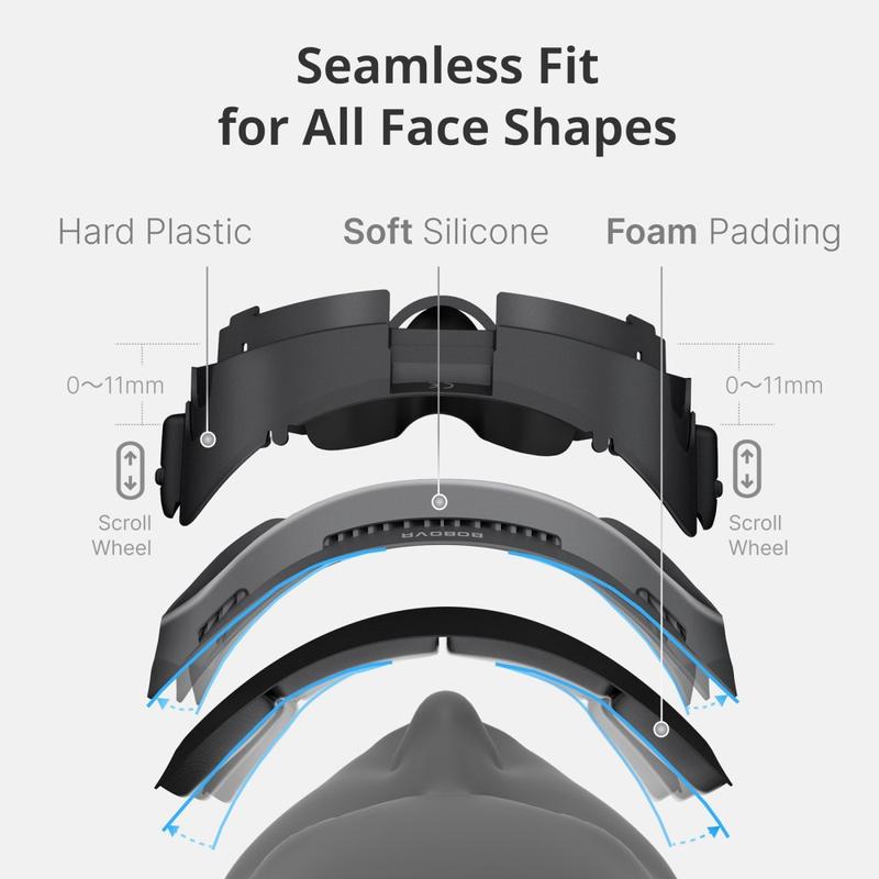 Wyposażony w boczne pokrętła BOBOVR F3 pozwala precyzyjnie dostosować odległość ekranu do indywidualnych preferencji. Niezależnie od tego, czy grasz, oglądasz filmy VR, czy pracujesz w wirtualnym środowisku, zawsze będziesz mieć zoptymalizowany widok.