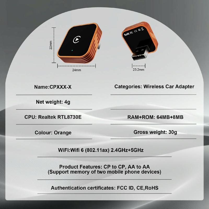 Zaprojektowany z myślą o kompatybilności zarówno z urządzeniami iPhone, jak i Android, CP030-3 obsługuje bezprzewodowe CarPlay i Android Auto, zapewniając płynniejsze codzienne użytkowanie w trasie. Jego kompaktowa konstrukcja ułatwia pozostawienie go podłączonego w samochodzie lub przenoszenie między pojazdami w razie potrzeby, a lekka i wytrzymała konstrukcja ze stopu aluminium i akrylu zapewnia niezawodne działanie w zmiennych warunkach panujących w samochodzie. Dzięki obsłudze BT 5.3 i transmisji bezprzewodowej adapter został zaprojektowany tak, aby utrzymywać stabilną komunikację między telefonem a systemem samochodowym.