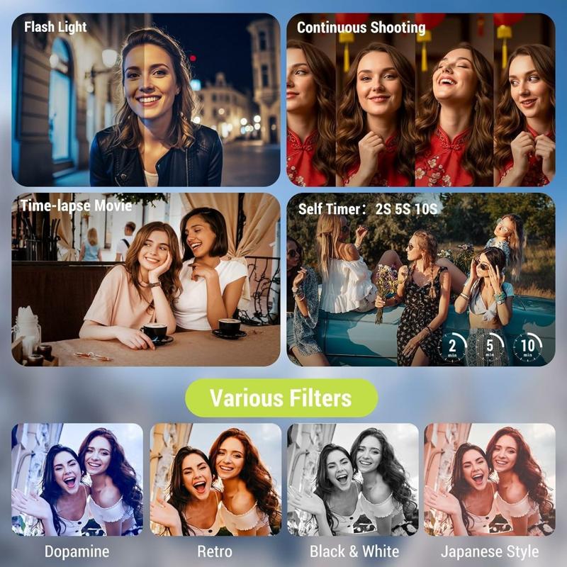 Kamera cyfrowa CV21 4K została zaprojektowana z myślą o twórcach treści, vlogerach i codziennych użytkownikach, którzy oczekują wysokiej jakości wideo i zdjęć w kompaktowej formie. Wyposażona w matrycę Sony 230D, rejestruje szczegółowe obrazy i płynne wideo 4K, a obracany o 270° ekran sprawia, że kadrowanie nie wymaga wysiłku. Dzięki potężnemu zoomowi cyfrowemu, kreatywnym filtrom i wielu trybom fotografowania, kamera ta jest wszechstronnym towarzyszem do vlogowania, podróży i codziennego nagrywania.