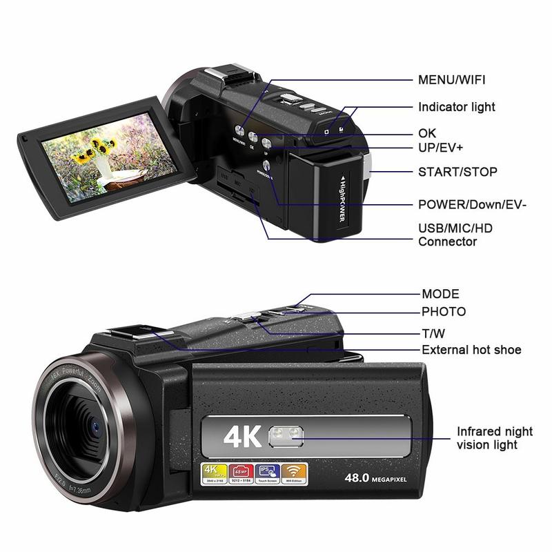 Cyfrowa kamera wideo HDV-254KM 4K - kamera Ultra HD 48 MP z 3,0-calowym ekranem dotykowym, 16-krotnym zoomem, noktowizorem IR i Wi-Fi