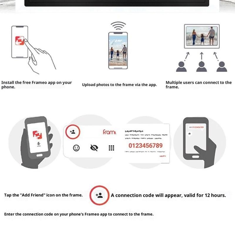 Ta inteligentna ramka na zdjęcia WiFi oferuje elegancki sposób na wyświetlanie wspomnień, łączenie się z rodziną i zachowanie najważniejszych chwil przy życiu - dzięki czemu idealnie nadaje się do domu, biura i przemyślanych prezentów.