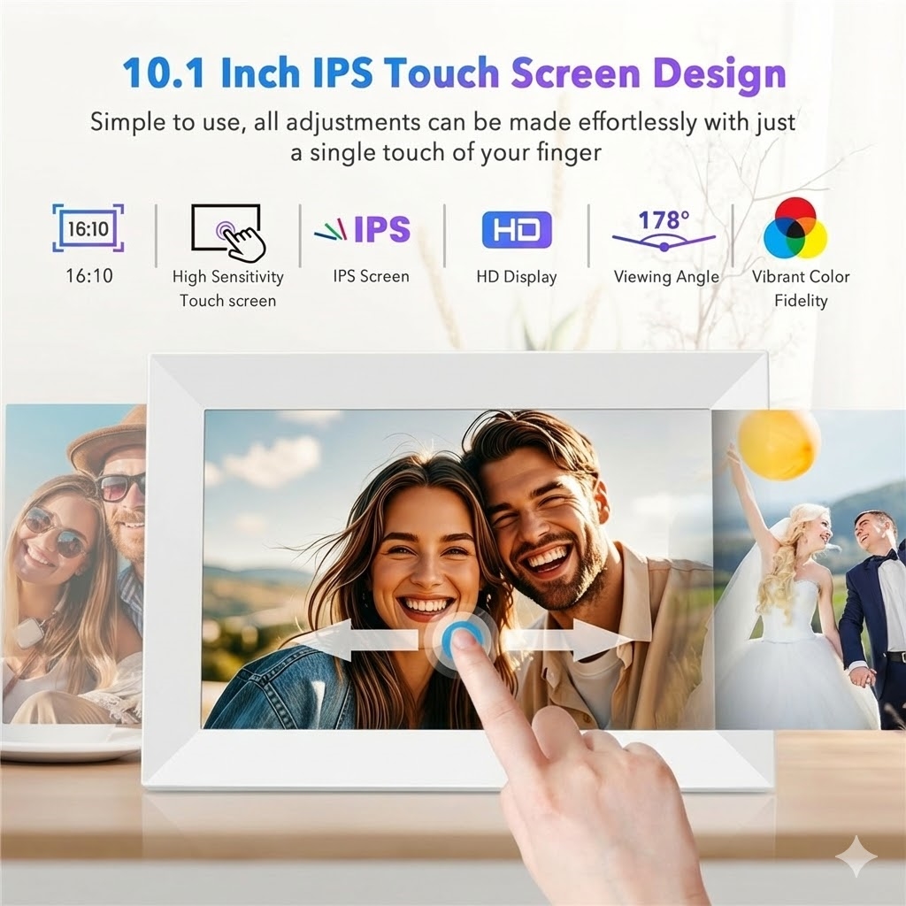 Cyfrowa ramka na zdjęcia HD WiFi 10.1" - ekran dotykowy, Cloud-Album, bezprzewodowe przesyłanie zdjęć/wideo, automatyczne obracanie