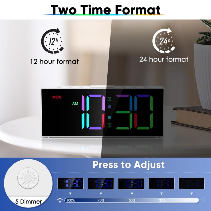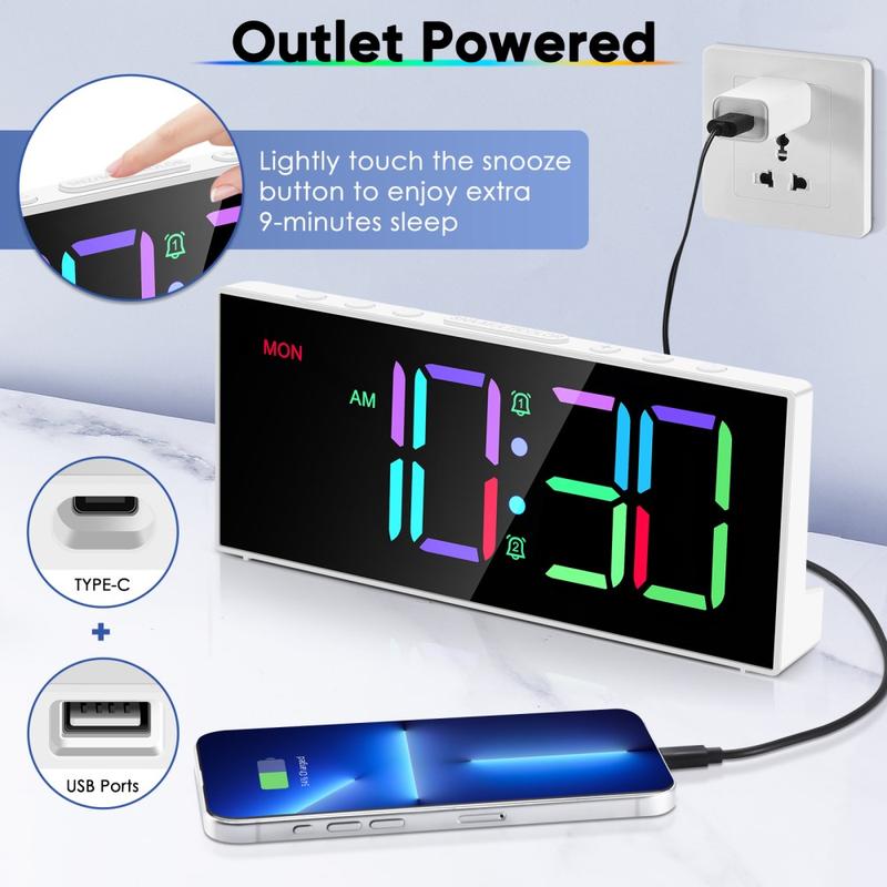 Cyfrowy budzik GS-G11 RGB to nowoczesny zegar stołowy przeznaczony do sypialni, salonów i biurek, gdzie liczy się dobra widoczność i łatwa obsługa. Jego żywy wyświetlacz LED oferuje wiele trybów kolorów RGB, a regulowana jasność i głośność pozwalają dostosować zegar do pomieszczenia i codziennych potrzeb. Dzięki podwójnemu budzikowi, wygodnej funkcji drzemki i pamięci zapasowej na wypadek awarii zasilania jest to praktyczny zegar do codziennego użytku, który dodatkowo stylowo rozjaśnia pomieszczenie.