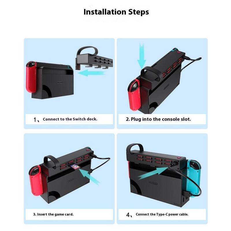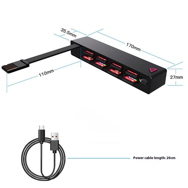 NS02 Czytnik kart do gier i przełącznik do Nintendo Switch/Switch OLED - 8-gniazdowy koncentrator z bezprzewodowym pilotem zdalnego sterowania