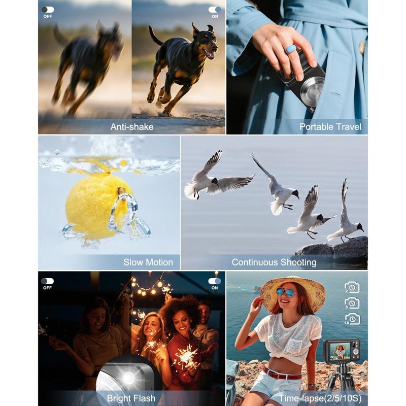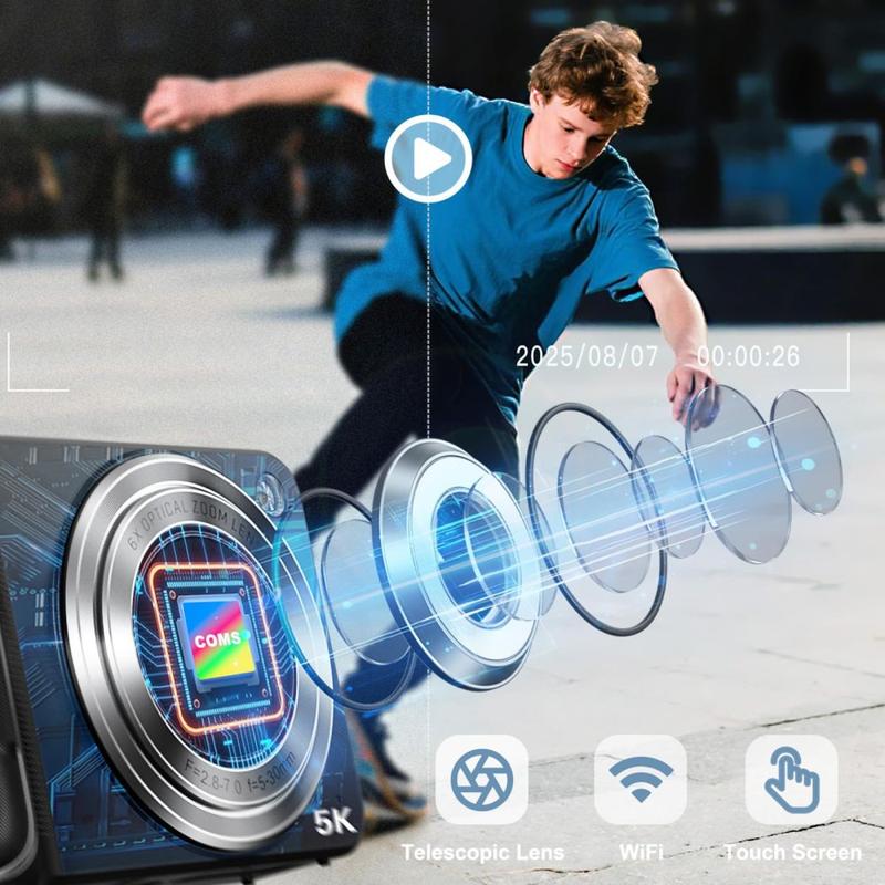 Mini aparat cyfrowy DC309X łączy w sobie dwa obiektywy o wysokiej rozdzielczości, 6-krotny zoom optyczny i zaawansowaną stabilizację, zapewniając wyjątkowe zdjęcia i filmy w kompaktowej, przenośnej konstrukcji. Wyposażony w profesjonalny przedni czujnik GC8613 800W i tylny obiektyw Sony IMX214 13 MP do selfie, aparat ten zapewnia ostre szczegóły krajobrazów i doskonałą wyrazistość autoportretów. Dotykowy wyświetlacz IPS HD o przekątnej 2,8 cala zapewnia wyraźny obraz i intuicyjne sterowanie.