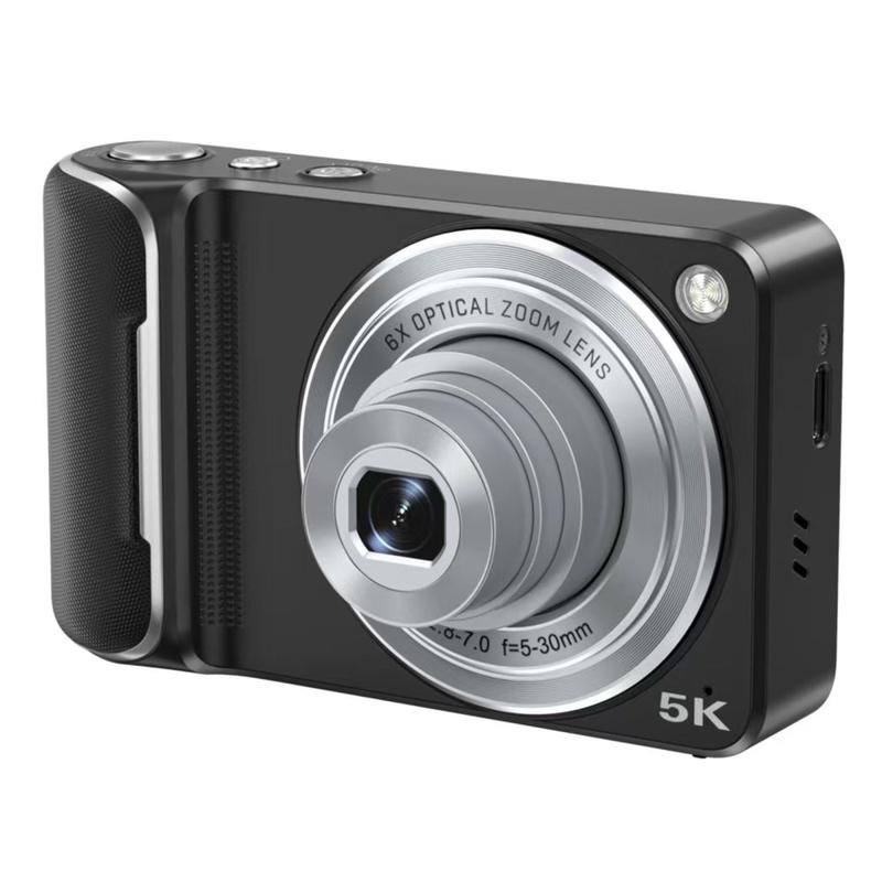 Mini kamera cyfrowa DC309X - 6-krotny zoom optyczny, podwójny obiektyw, wideorejestrator 5K z kartą 32GB i 2 bateriami