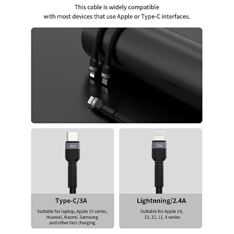 - Konstrukcja kabla typu „jeden do dwóch” dla urządzeń USB-C i Lightning