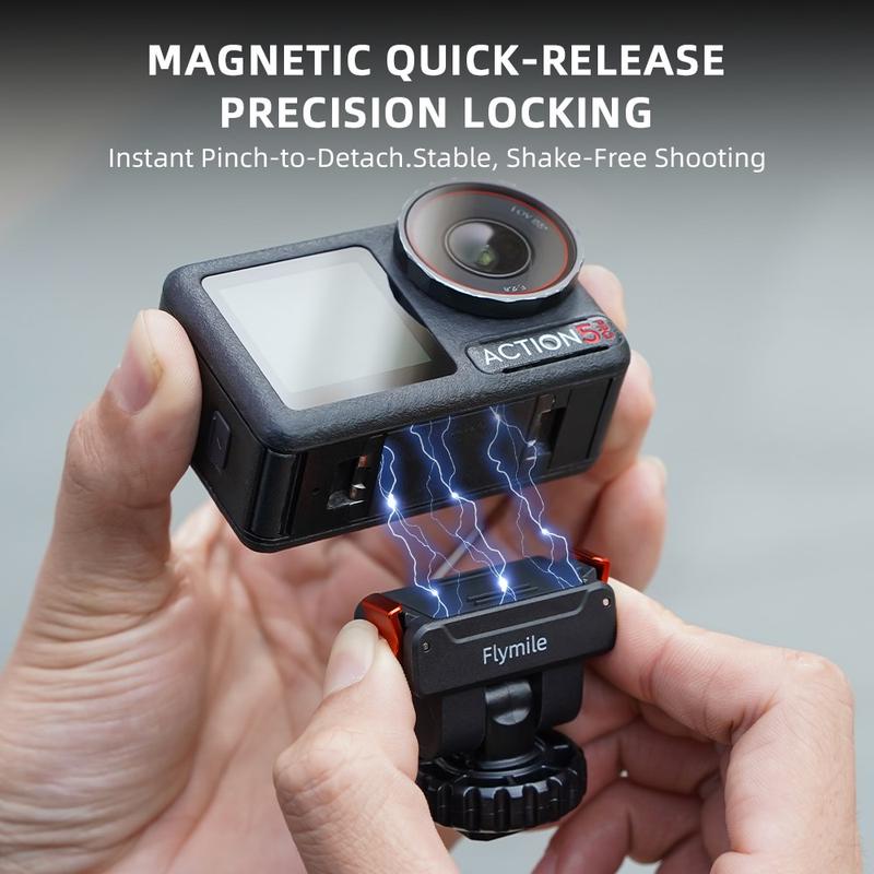Magnetyczny uchwyt Flymile Quick Release Mount do DJI Osmo Action 5 Pro/4/3 - adapter Cold Shoe z możliwością pochylenia o 180° i gwintem 1/4"