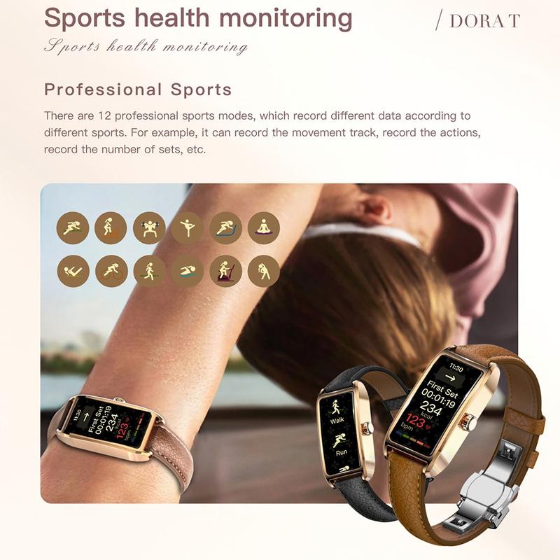 Wyposażony w 12 profesjonalnych trybów sportowych, ciągłe czujniki tętna i SpO₂, śledzenie temperatury, ocenę stresu i analizę fazy snu, Dora T pomaga zrozumieć swoje ciało i zoptymalizować cele fitness. Zapewnia wgląd w czasie rzeczywistym, który zachęca do zdrowszego, bardziej zrównoważonego stylu życia.