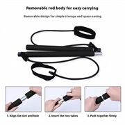 Drążek do pilatesu z taśmami oporowymi - odłączany drążek do treningu siłowego i rozciągania, 91cm, antypoślizgowy uchwyt NBR, obrotowe haki