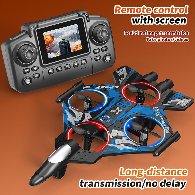 Zintegrowana kamera 480P (interpolowana do 4K) rejestruje zdjęcia i filmy z lotu ptaka, a zasięg transmisji na żywo wynoszący 30-50 metrów pozwala oglądać akcję bezpośrednio na wbudowanym ekranie pilota zdalnego sterowania.