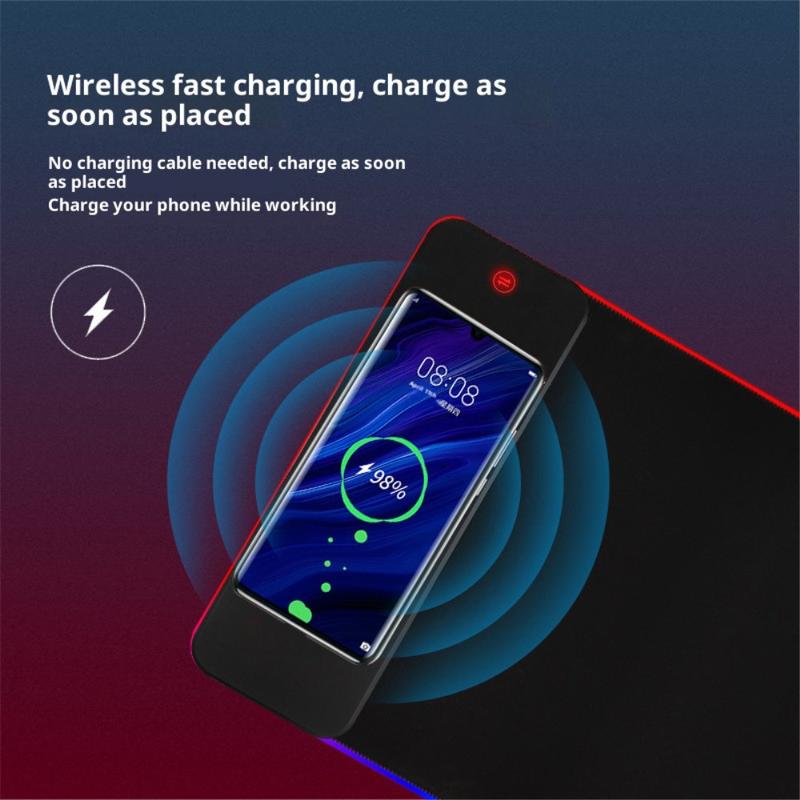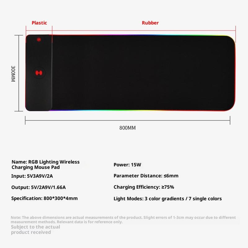 Duża antypoślizgowa podkładka pod klawiaturę/mysz RGB z bezprzewodową ładowarką 15W i podświetleniem LED - 800×300×4 mm