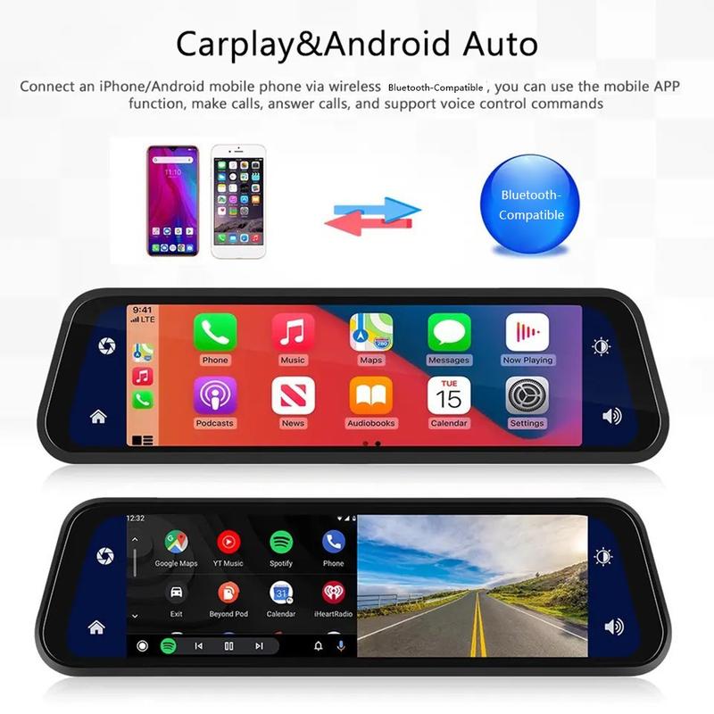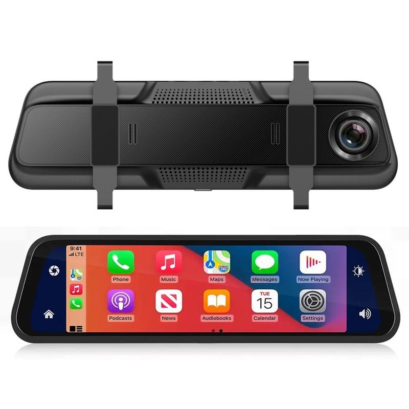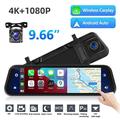 904 9.66-calowa kamera samochodowa z ekranem dotykowym i funkcją CarPlay - pełnoekranowe lusterko wsteczne 4K i 1080P z podwójnym obiektywem DVR