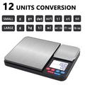 Doświadcz profesjonalnej dokładności i wszechstronności dzięki dwuplatformowej cyfrowej wadze kuchennej, zaprojektowanej zarówno do ciężkich, jak i delikatnych pomiarów. Dzięki dwóm niezależnym platformom ważącym - jednej dużej i jednej mikroprecyzyjnej - ta waga jest idealna do wszystkiego, od składników do pieczenia po ważenie biżuterii, proszków lub przypraw.