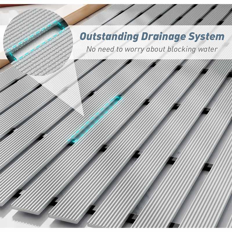Ta drenująca mata łazienkowa łączy w sobie bezpieczeństwo, higienę i komfort w jednym inteligentnym projekcie. Jej antypoślizgowa tekstura zapewnia stabilność, system drenażowy zapewnia czystszą i bardziej suchą powierzchnię, a wyściełany materiał TPE zapewnia komfort pod stopami - a wszystko to przy jednoczesnej łatwości przechowywania i konserwacji.