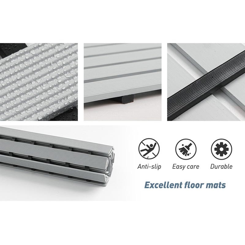 Wyposażona w duże, strategicznie rozmieszczone otwory drenażowe, mata pozwala wodzie szybko przepływać, zapobiegając gromadzeniu się i pomagając podłodze szybciej wyschnąć. Zmniejsza to również ryzyko rozwoju pleśni i zatykania się obszarów.