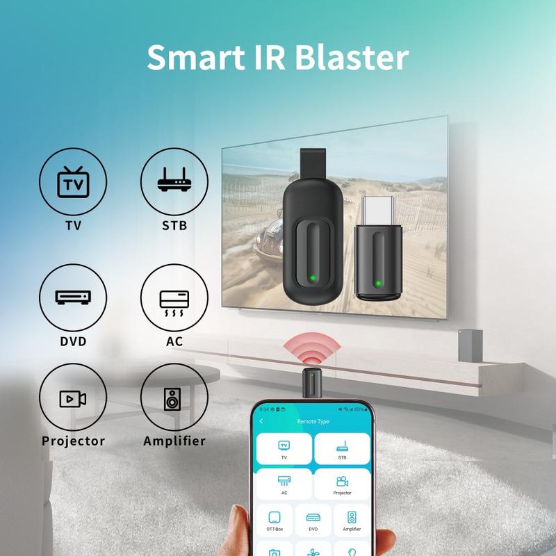 Bez baterii, bez ładowania i bez ograniczeń związanych z aplikacjami - wystarczy podłączyć adapter do portu Lightning/Type-C urządzenia i cieszyć się natychmiastową kontrolą nad domową elektroniką opartą na podczerwieni.