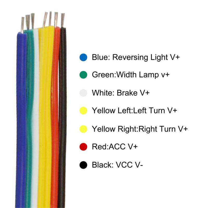 - Zielony przewód (światło do jazdy): niebieskie światło po podłączeniu do ACC / małej linii świetlnej (12V)