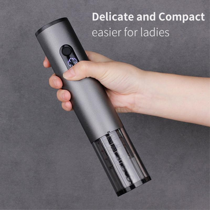 Otwieraj butelki wina bez wysiłku dzięki elektrycznemu otwieraczowi do wina SW-C006U. Wystarczy nacisnąć przycisk, aby usunąć korek w kilka sekund, co pozwala uniknąć złamanych korków i bałaganu przy stole. Dołączony przecinak do folii umożliwia szybkie usuwanie plomb, dzięki czemu można szybciej nalewać wino podczas kolacji, przyjęć, wesel lub w barze. Zaprojektowany tak, aby był kompaktowy i łatwy do przechowywania, jest doskonałym codziennym narzędziem kuchennym i przemyślanym prezentem. Jedno pełne naładowanie może otworzyć do 80 butelek (jak podano), a otwieracz ładuje się wygodnie przez USB-C. Jest dostarczany z 4 akumulatorami niklowo-kadmowymi AA, dzięki czemu można go używać od razu po wyjęciu z pudełka.