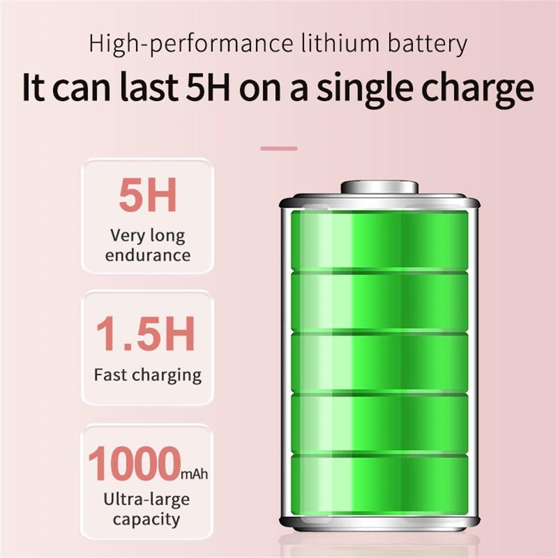 - Długa żywotność baterii - zasilana akumulatorem o pojemności 1000 mAh, zapewnia do 5 godzin ciągłej pracy na jednym 1,5-godzinnym ładowaniu za pośrednictwem interfejsu Type-C.