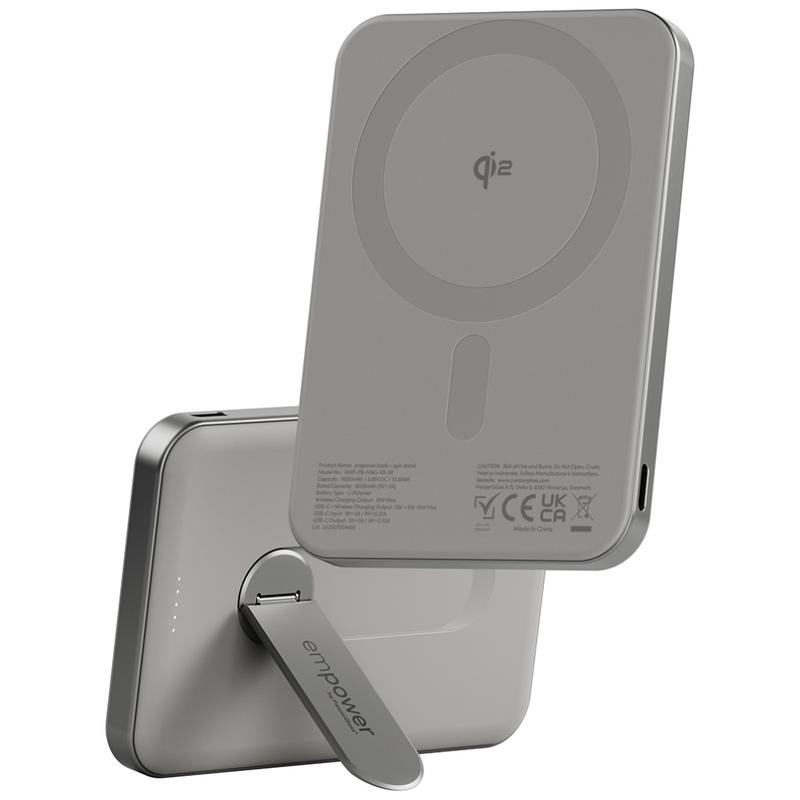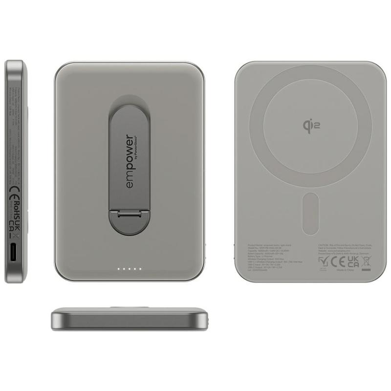 Empower by PanzerGlass Magnetyczny bezprzewodowy power bank ze stojakiem obrotowym - power bank o pojemności 5000mAh, kompatybilny z Qi2 i MagSafe