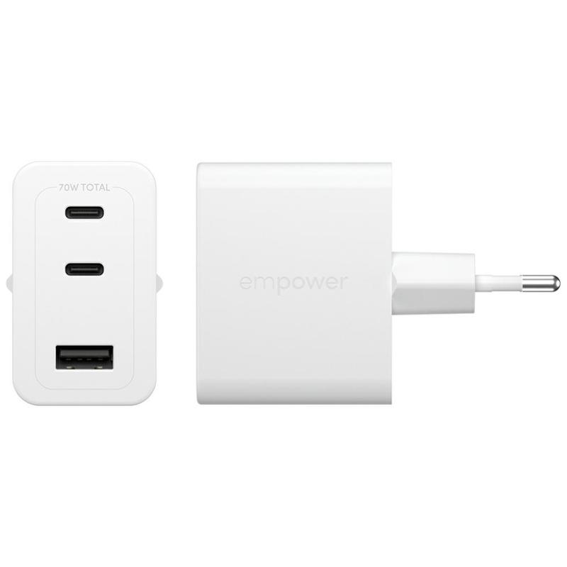 Empower by PanzerGlass Turbo 70W Charger - szybka ładowarka GaN 2× USB-C + 1× USB-A