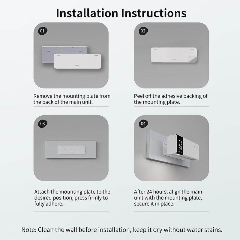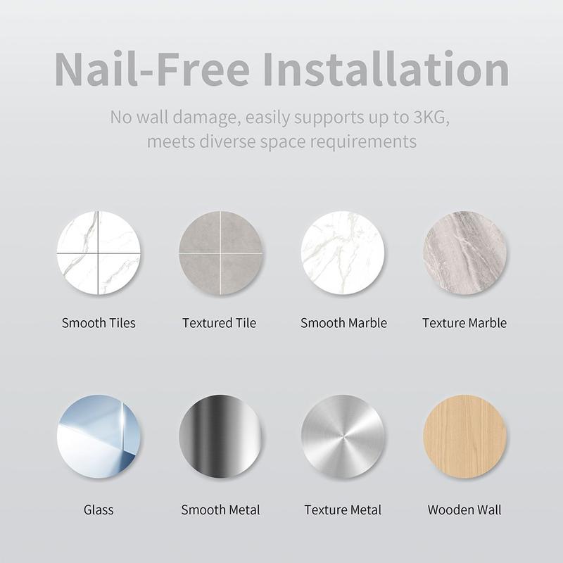 - Łatwa instalacja na ścianie - montaż bez wiercenia i klejenia sprawia, że ściany pozostają nienaruszone, a konfiguracja jest bezproblemowa.