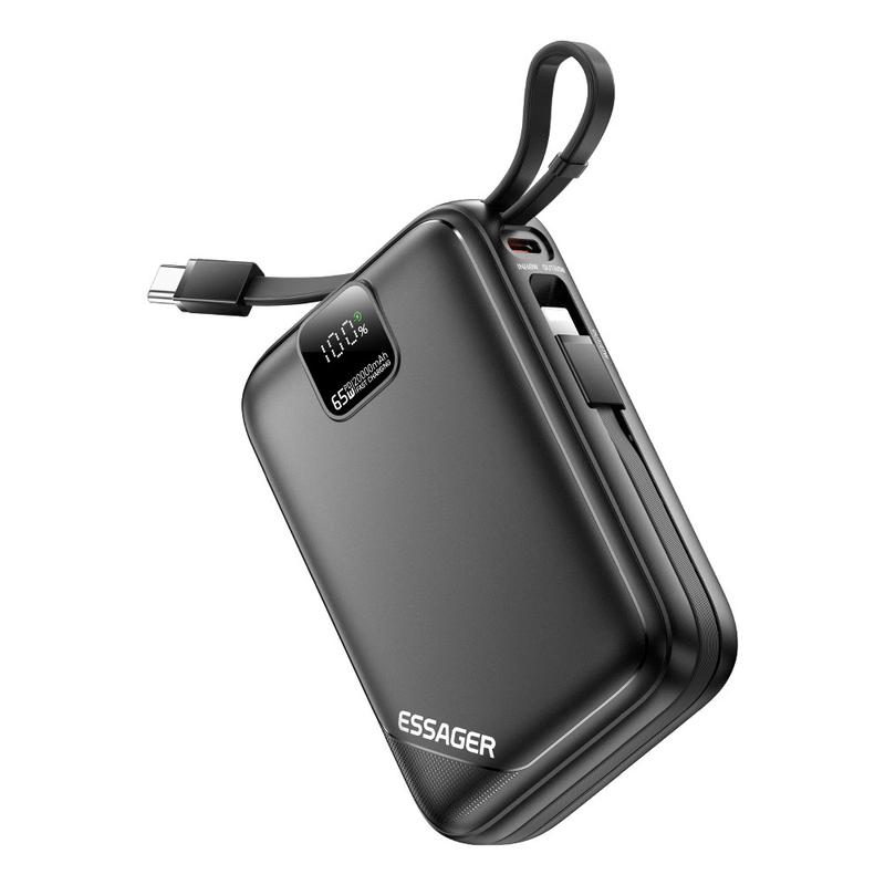 Essager 20000mAh PD 65W Fast Charging Power Bank - przenośna bateria zewnętrzna z wyświetlaczem LED, wbudowanymi kablami Lightning i USB-C