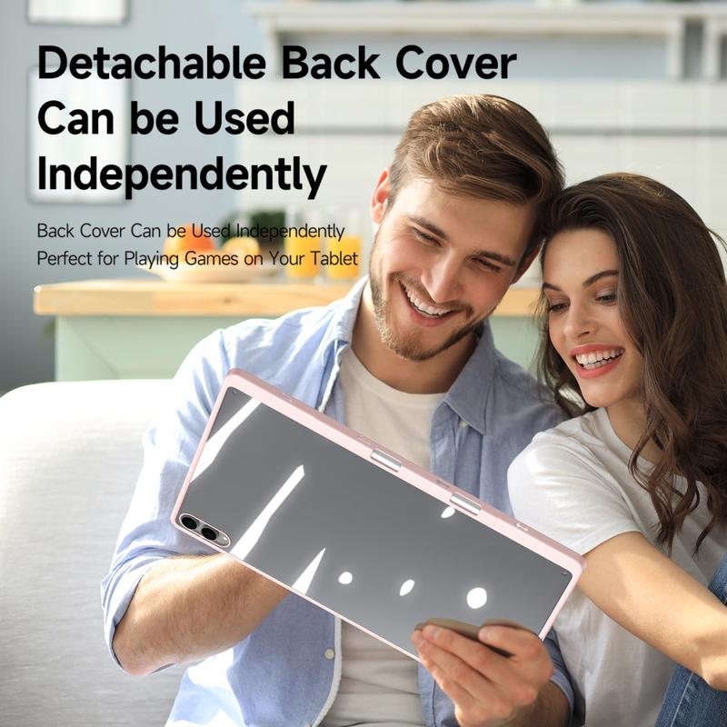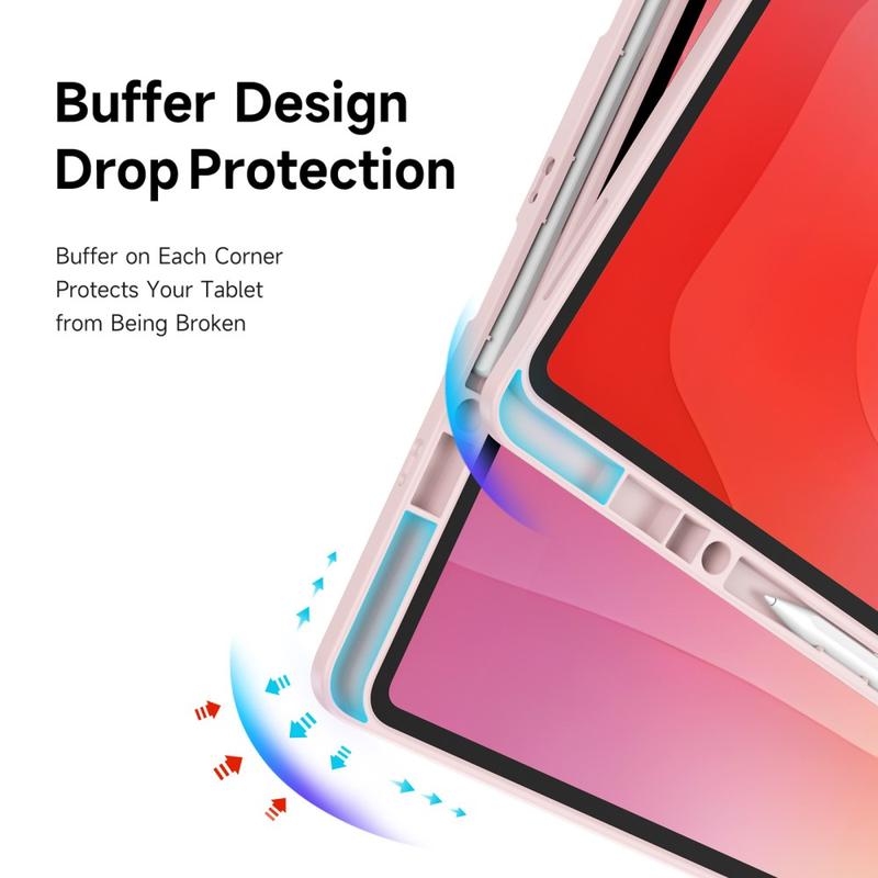 Ultra-Slim: Smukła, lekka i miękka w dotyku przednia obudowa wykonana jest z wysokiej jakości skóry PU, odporne na zarysowania wnętrze zapewnia doskonałą ochronę, a ramka TPU + tył z PC sprawiają, że tablet jest bardziej stabilny.
