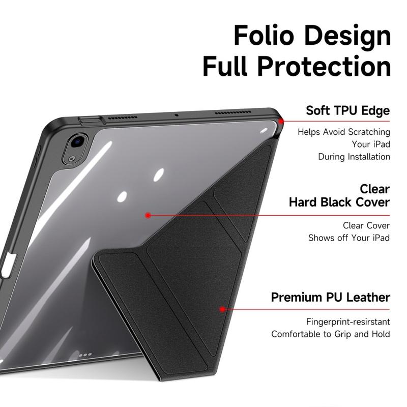 Z podstawką: Stojące etui sprawia, że pisanie na klawiaturze, oglądanie filmów, surfowanie po Internecie i czytanie jest znacznie wygodniejsze, a obie ręce są wolne.