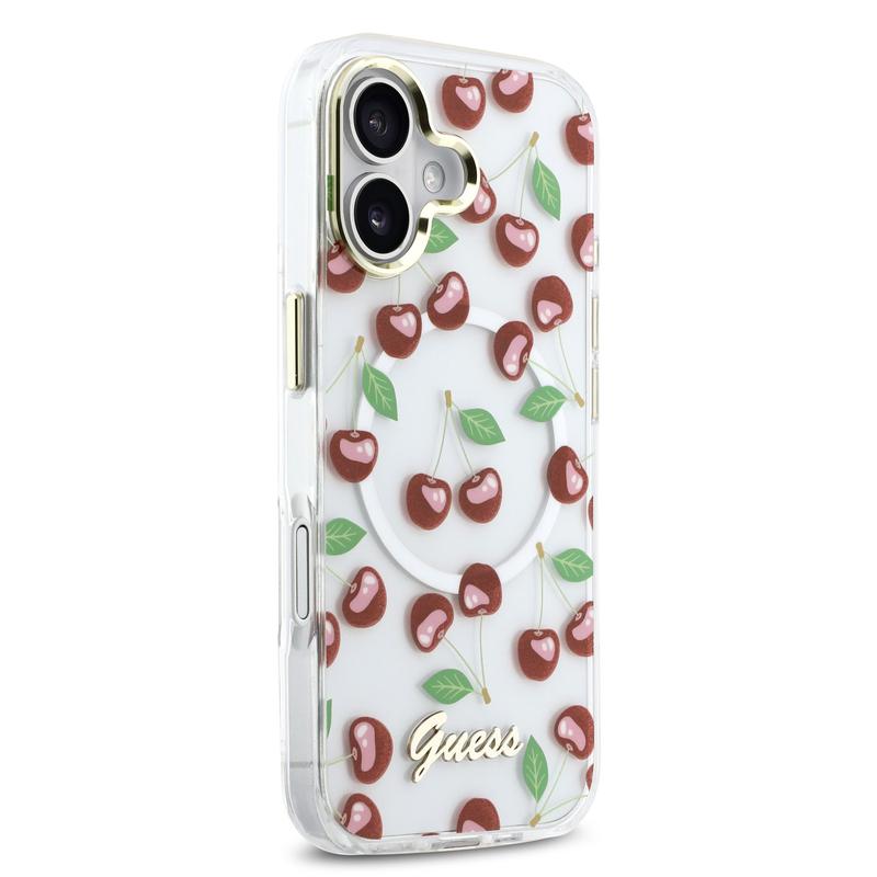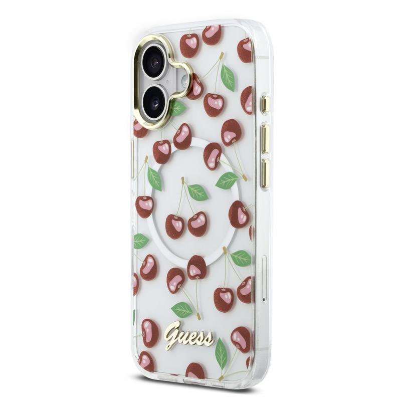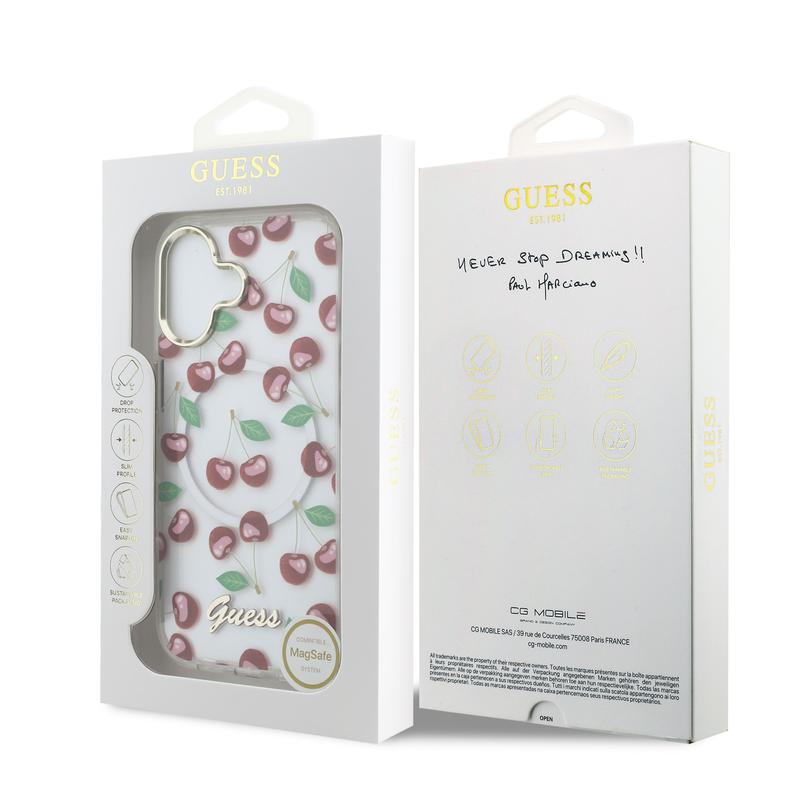 - Oficjalny produkt Guess — wysokiej jakości wykończenie z kultowym logo Guess i wzorem Glitter Cherry IML