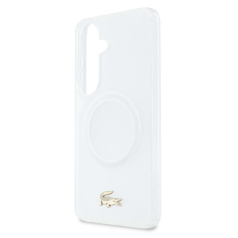 Etui hybrydow Lacoste Frosted Finish Gold Logo dla Samsung Galaxy S26 - kompatybilny z MagSafe, złote logo i ramka aparatu, tylna obudowa premium