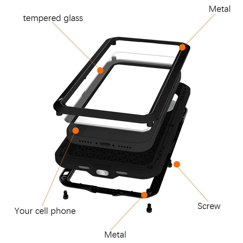 - Konstrukcja z blokadą śrubową - wzmocniona bezpiecznymi narożnikami z blokadą śrubową, które mocno uszczelniają obudowę, zapewniając ochronę telefonu podczas upadków, wstrząsów i nieostrożnego obchodzenia się z nim.