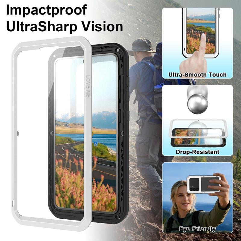 - Konstrukcja z blokadą śrubową - wzmocniona bezpiecznymi narożnikami z blokadą śrubową, które mocno uszczelniają obudowę, zapewniając ochronę telefonu podczas upadków, wstrząsów i nieostrożnego obchodzenia się z nim.